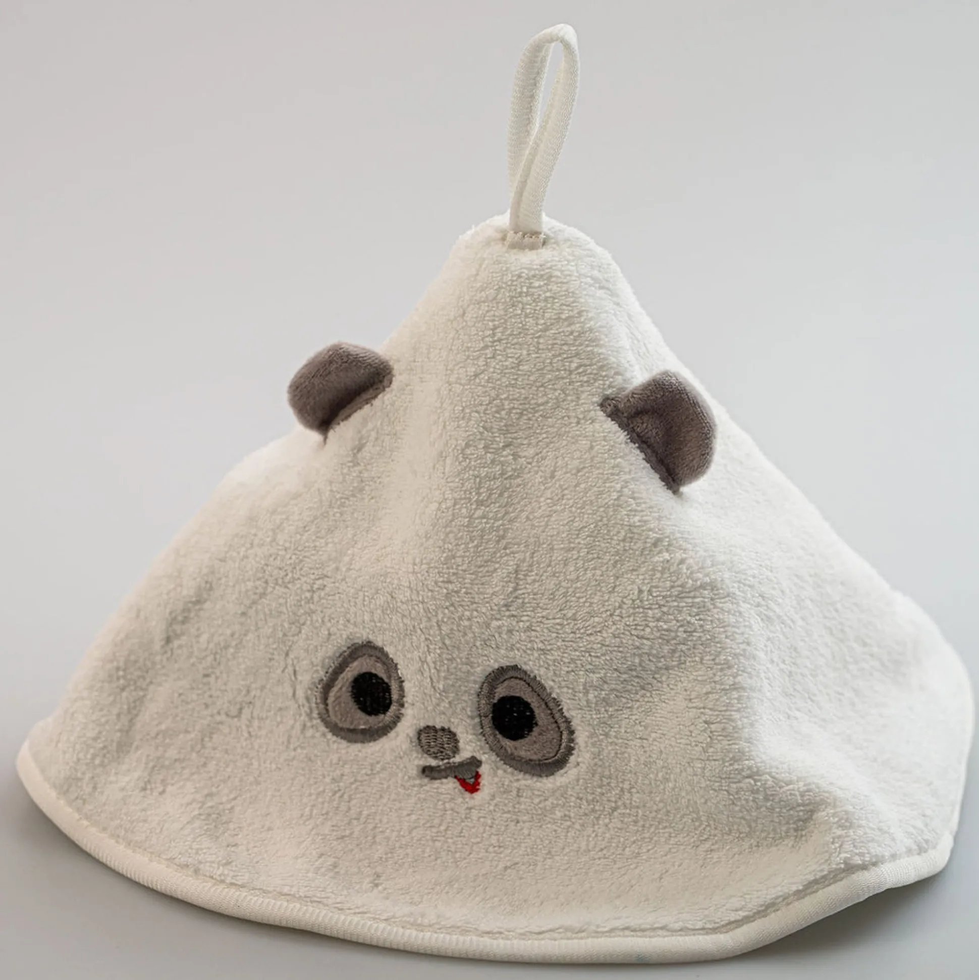 Asciugamano Medio Tondo Per Il Bagno Con Vari Personaggi: Panda Bianco, Coniglio Rosa, Coniglio Azzurro.