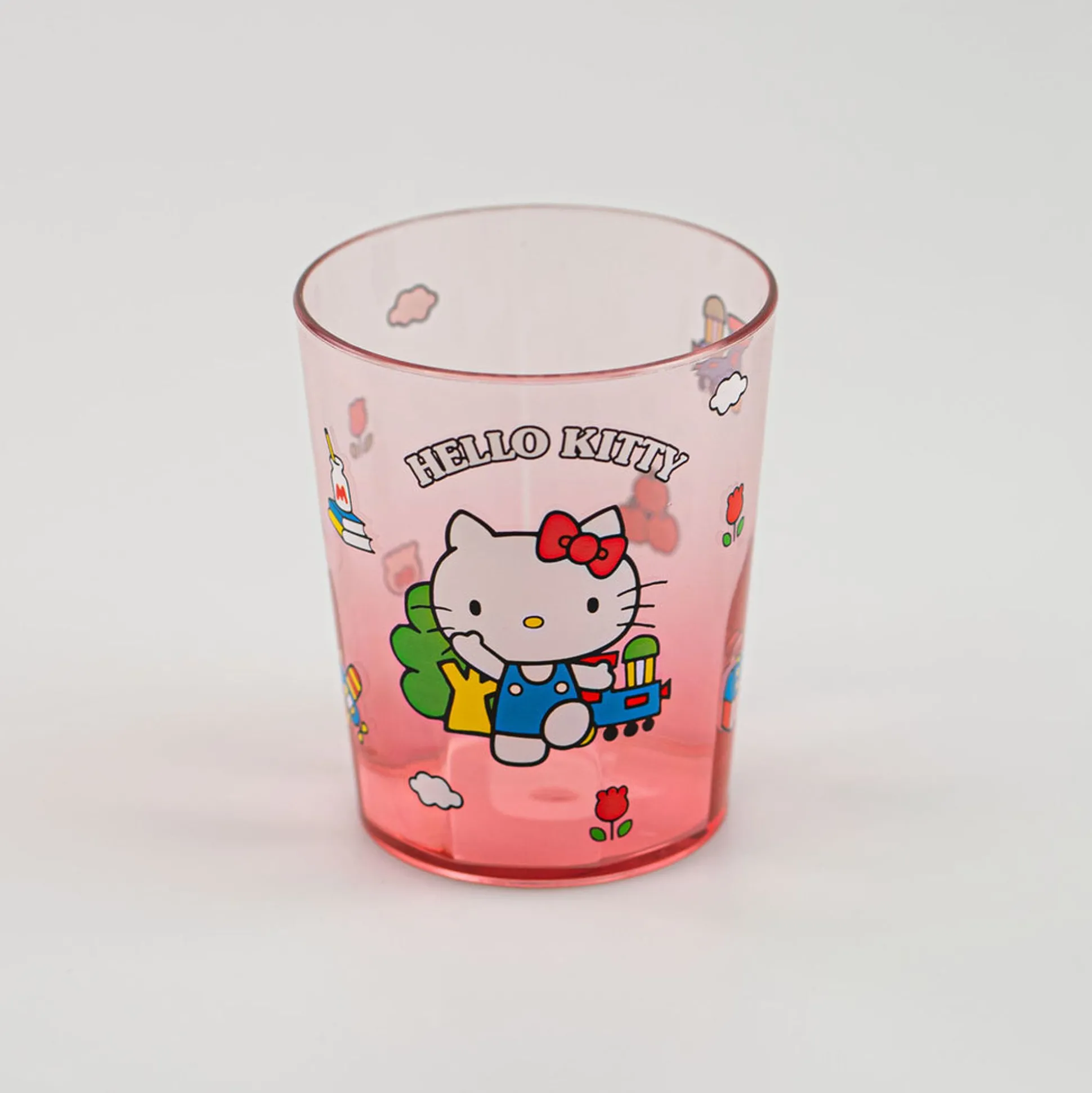 Bicchiere Porta Spazzolino Da Bagno, In Color Rosso Che Sfuma Al Trasparente Di Hello Kitty Della Collezione Sanrio.