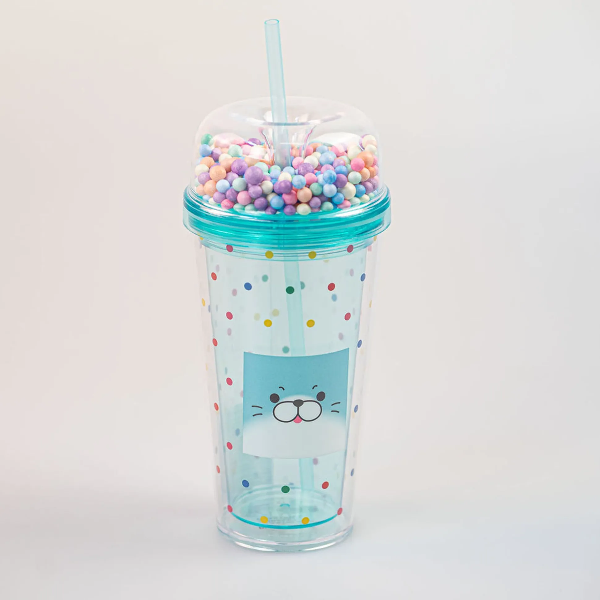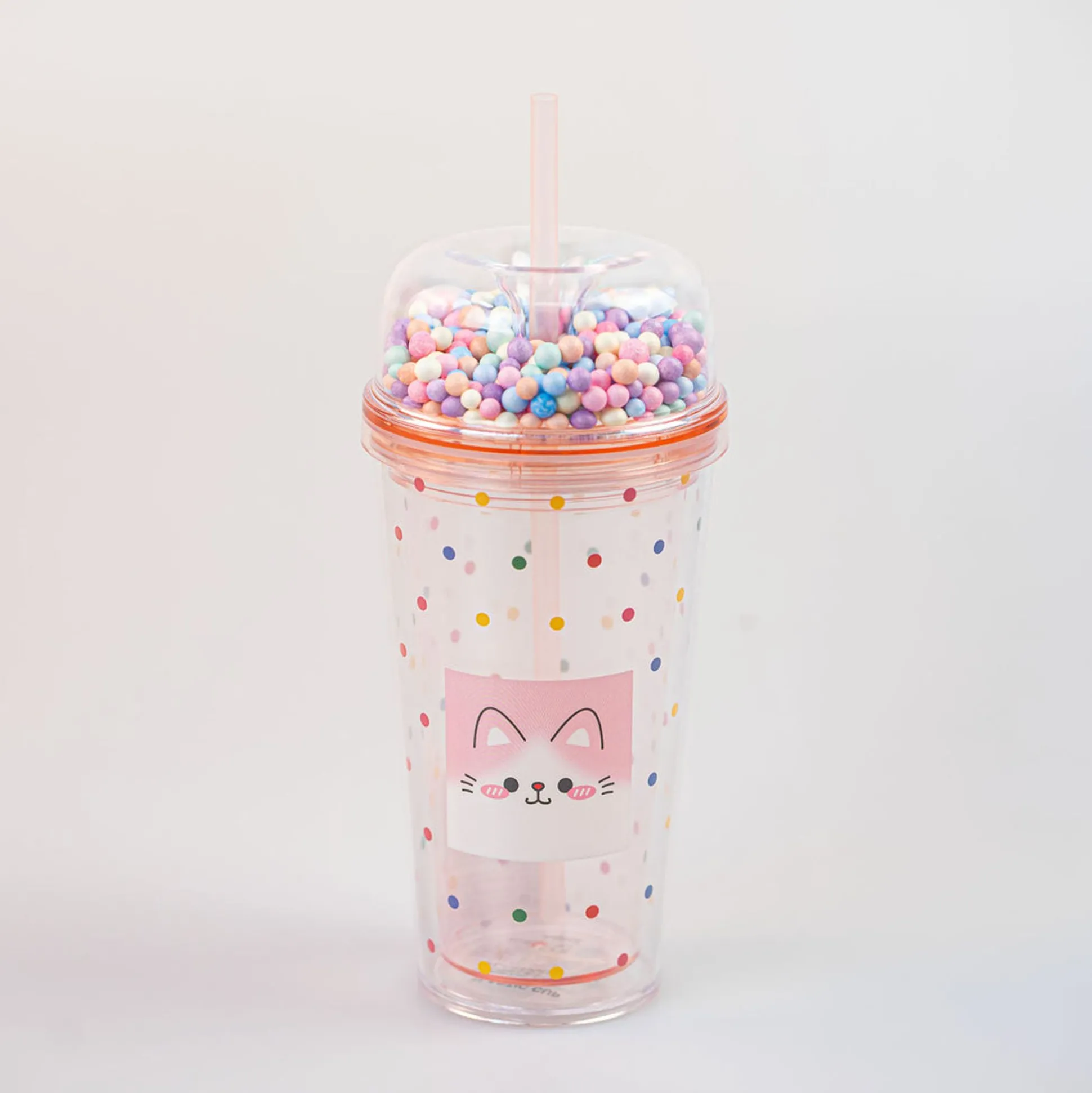 Borraccia Con Cannuccia Della Collezione Animal Faces Disponibile In Due Varianti Di Colore: Rosa E Azzurro.