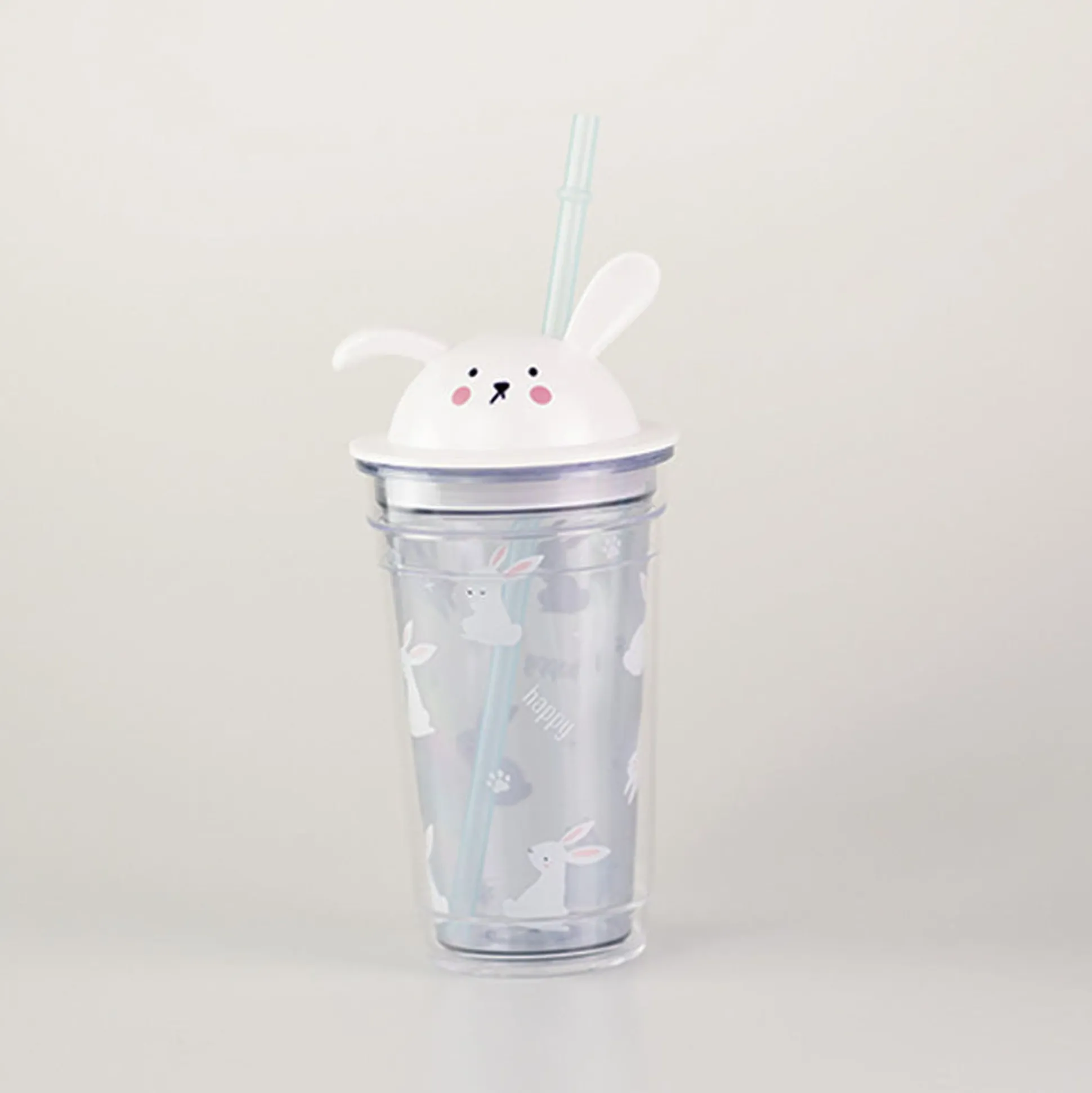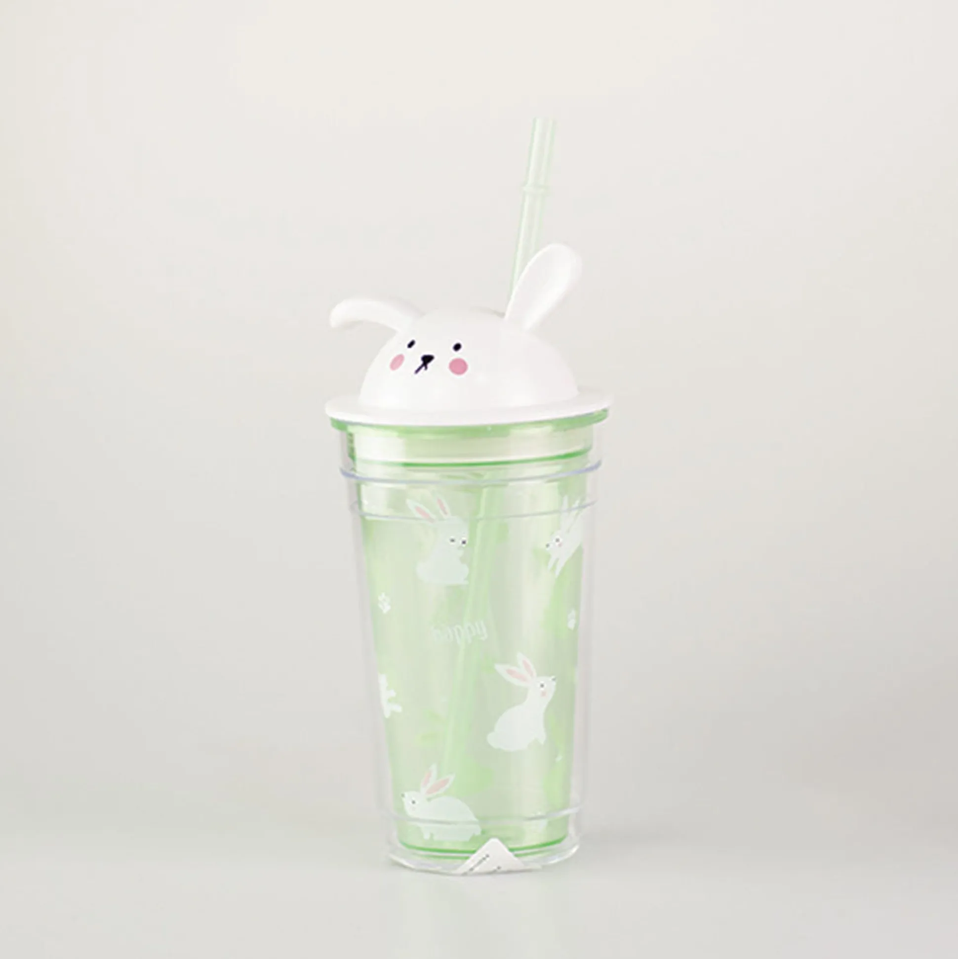 Borraccia Coniglietto Happy Con Cannuccia In Due Varianti Di Colore: Verde E Azzurra.