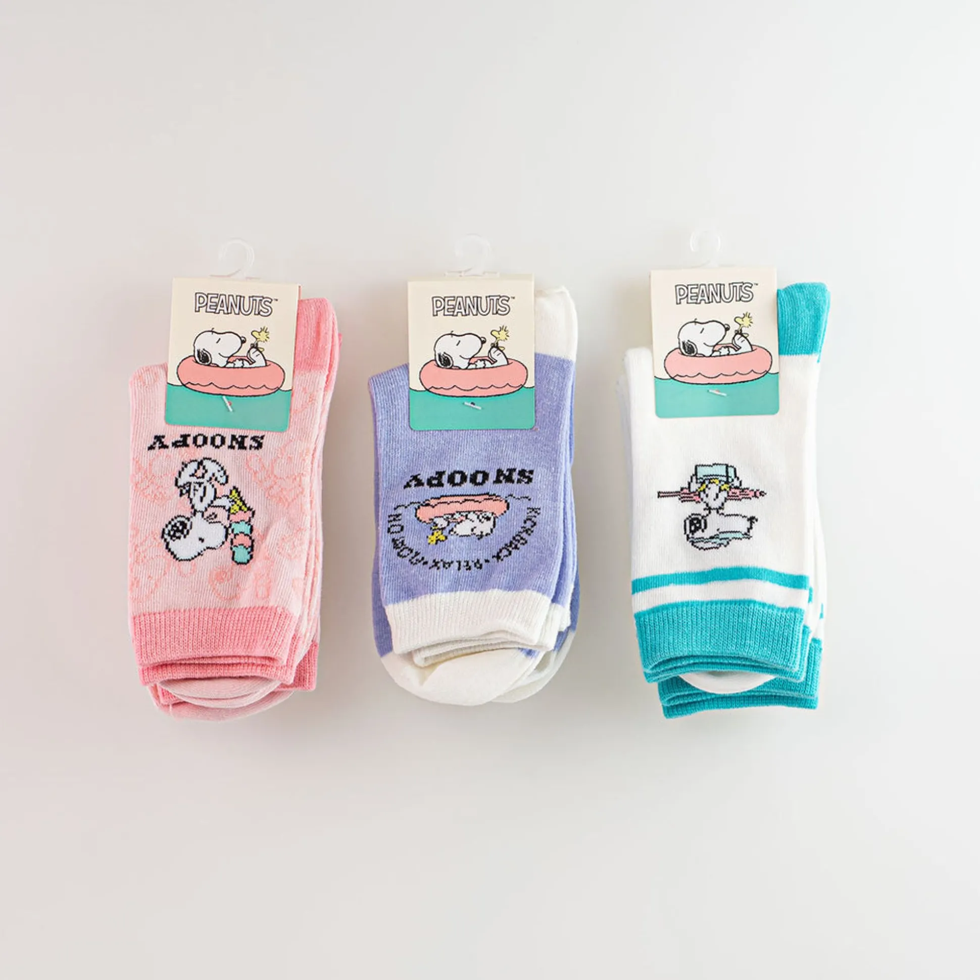 Calzini A Mezzo Polpaccio In Cotone Di Snoopy Disponibili In 3 Varianti: Rosa, Bianco E Viola.