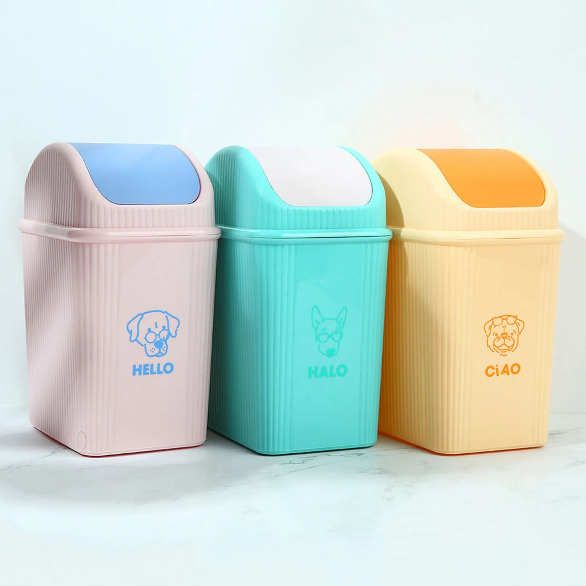 Cestino Da Scrivania Disponibile In 3 Colori: Rosa, Giallo E Verde.