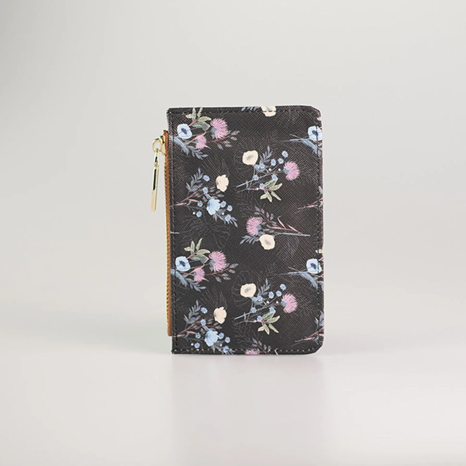 Portacarte Nero Con Fantasia Floreale Sottile, Perfetto Per Qualsiasi Borsa.