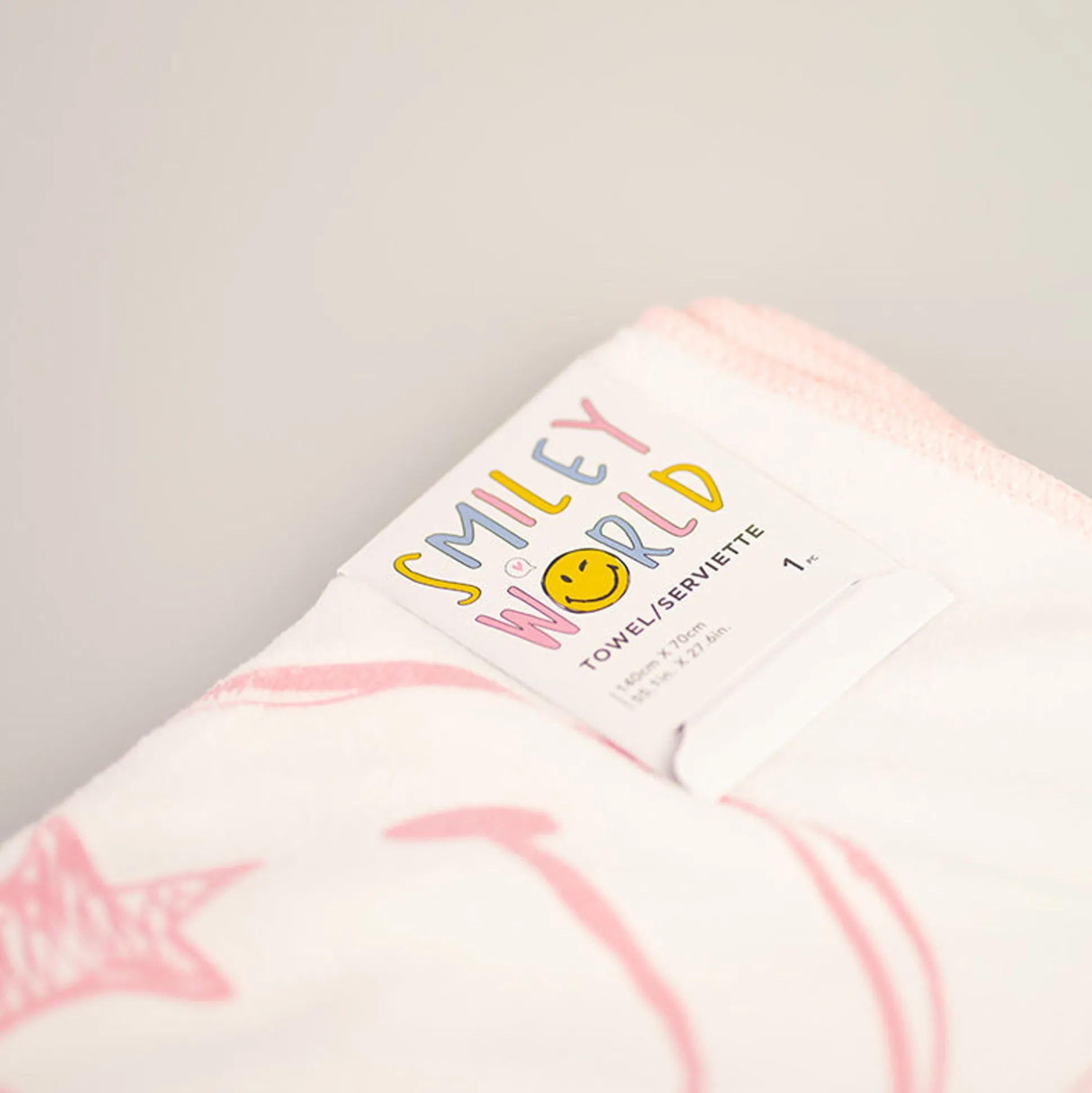 Asciugamano Grande, Bianco E Rosa Della Collezione Smiley World Perfetto.