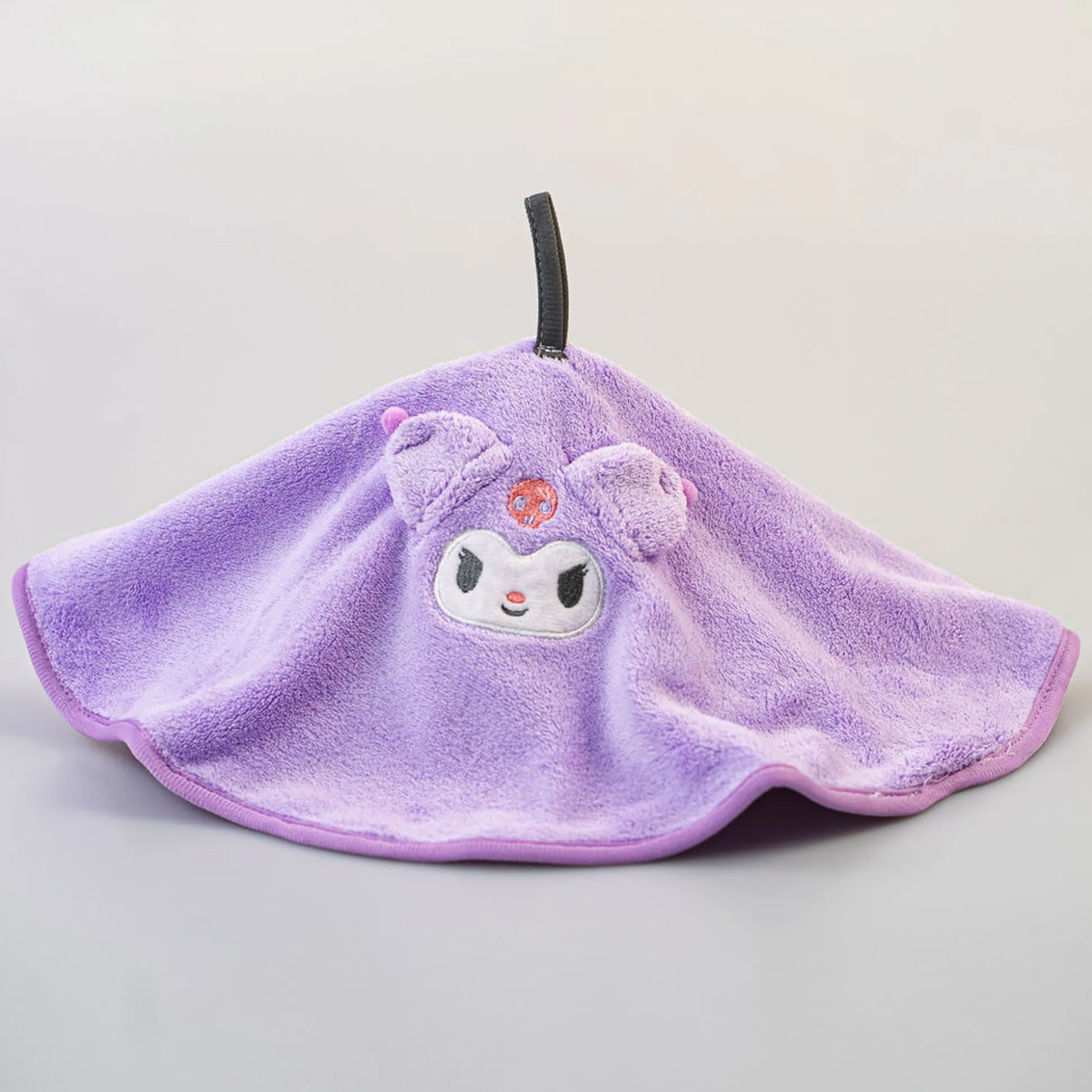 Asciugamano Piccolo Color Lilla Con La Testa Di Kuromi Della Collezione Sanrio.