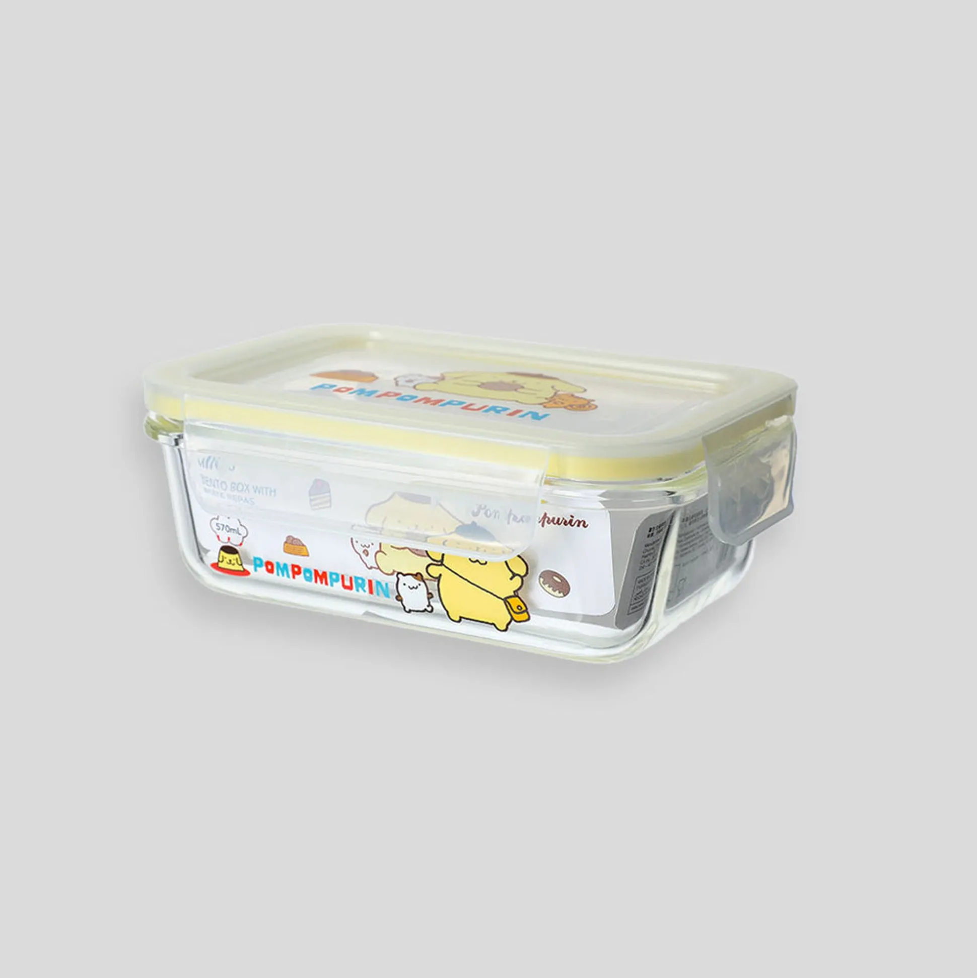 Bento Box Porta Pranzo Trasparante Con Rifiniture Gialle Pompompurin Della Collezione Sanrio.