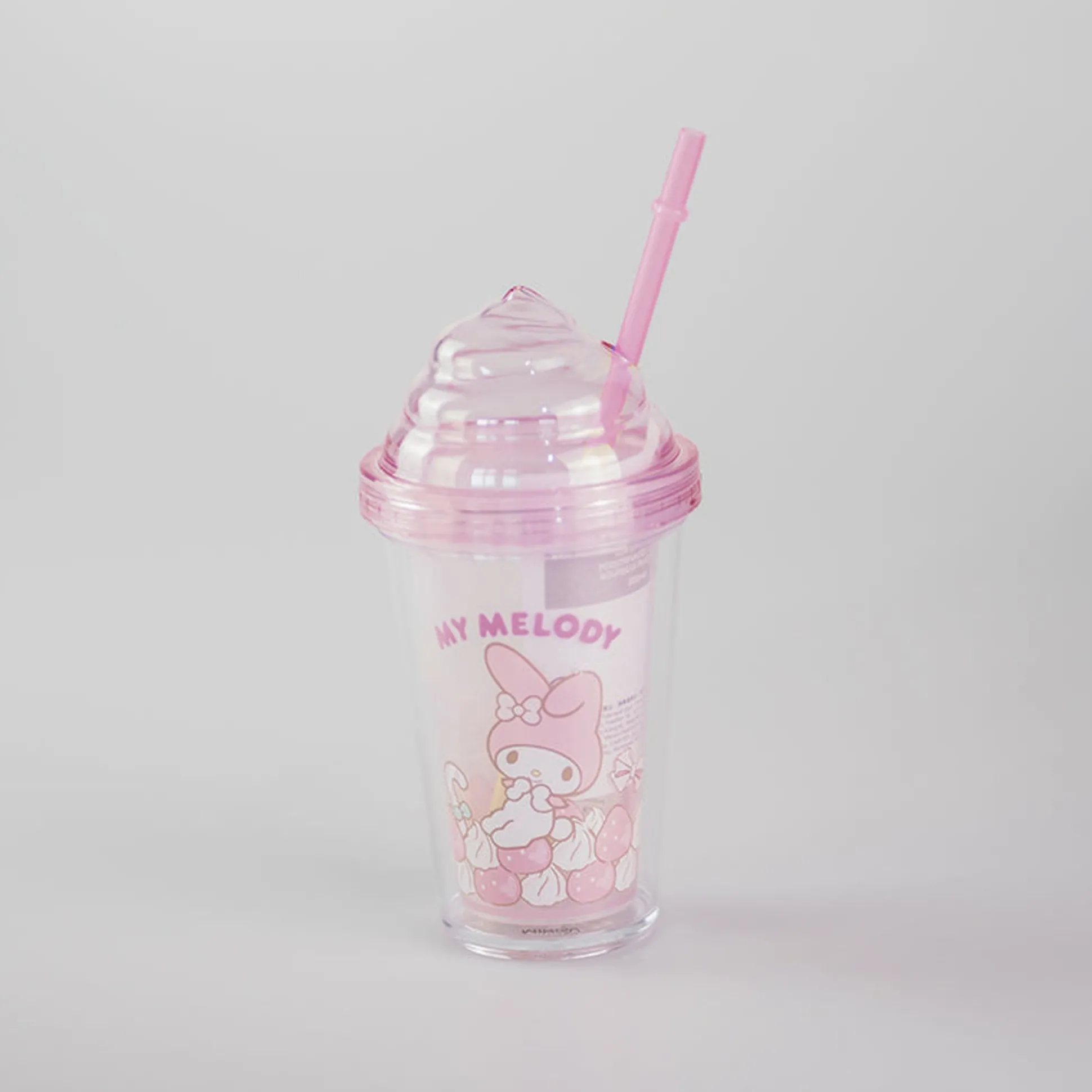 Borraccia Rosa In Plastica Dura Con Cannuccia Di My Melody Della Collezione Sanrio.
