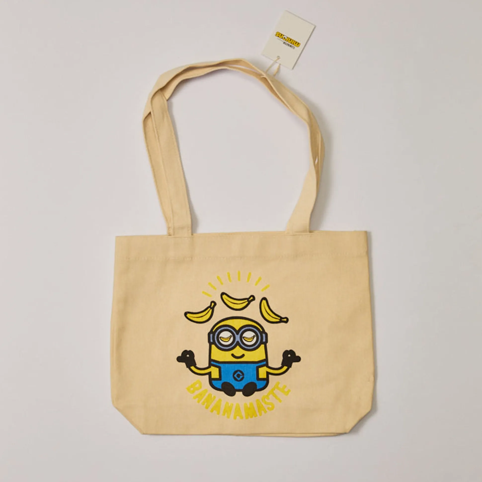 Shopping Bag Minions In Canva, Versione Tote Bag, Color Beije Con Bob E Banane.
