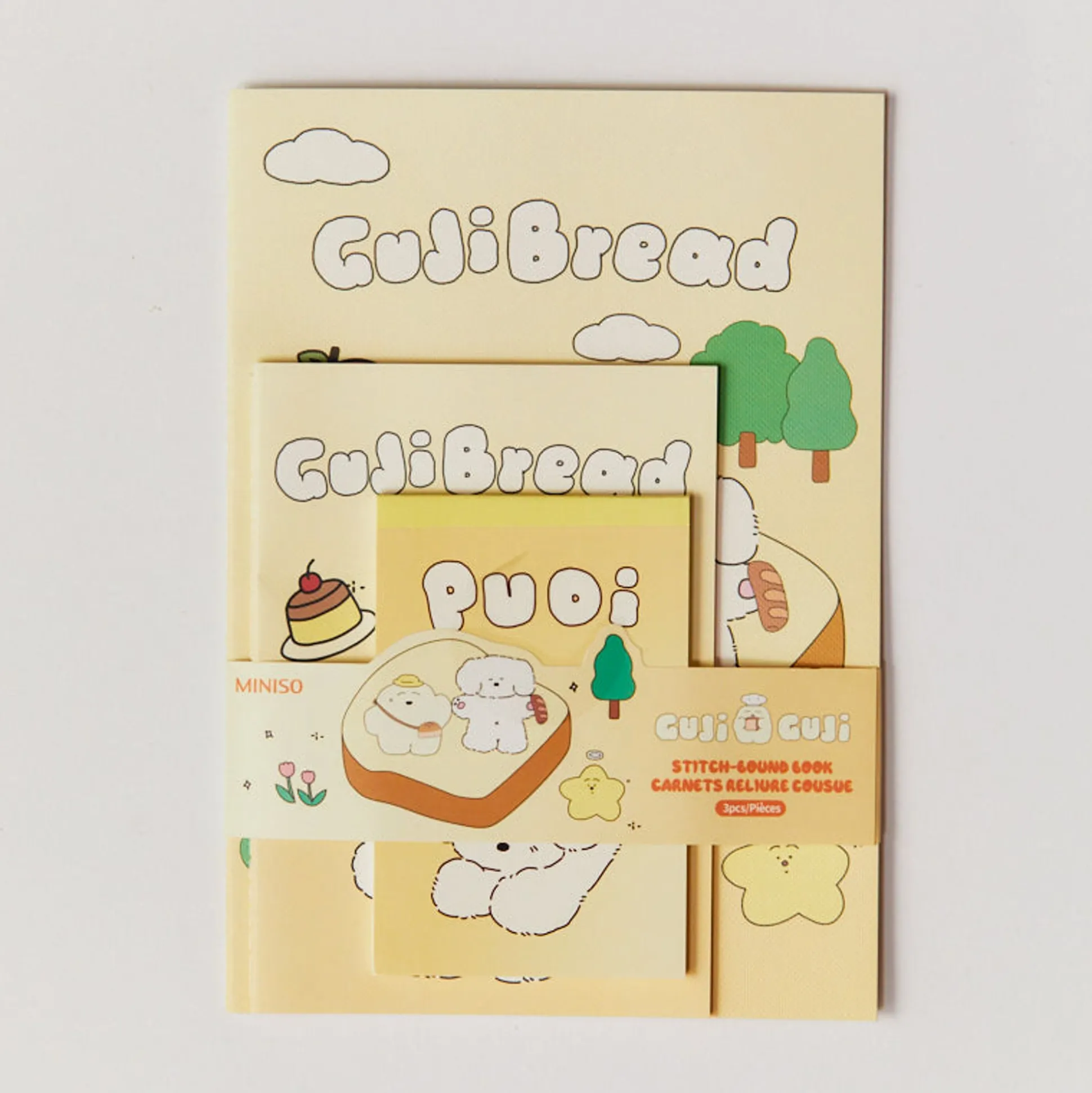 Il Set Di Quaderni Stitch Bound Di Guji Guji, Comprende 3 Pezzi Di Dimensioni Differenti, A Righe, Con Simpatiche E Tenere Fantasie.