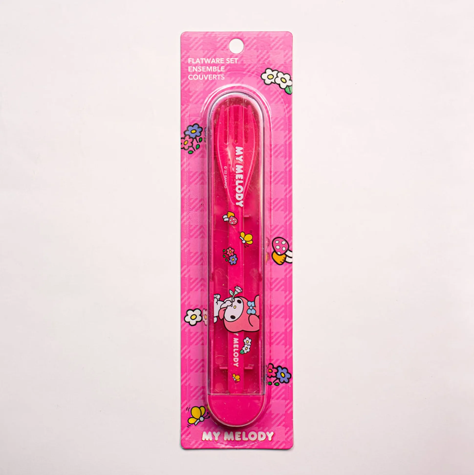 Set Di Posate In Plastica In Color Fucsia Di My Melody Della Collezione Sanrio.