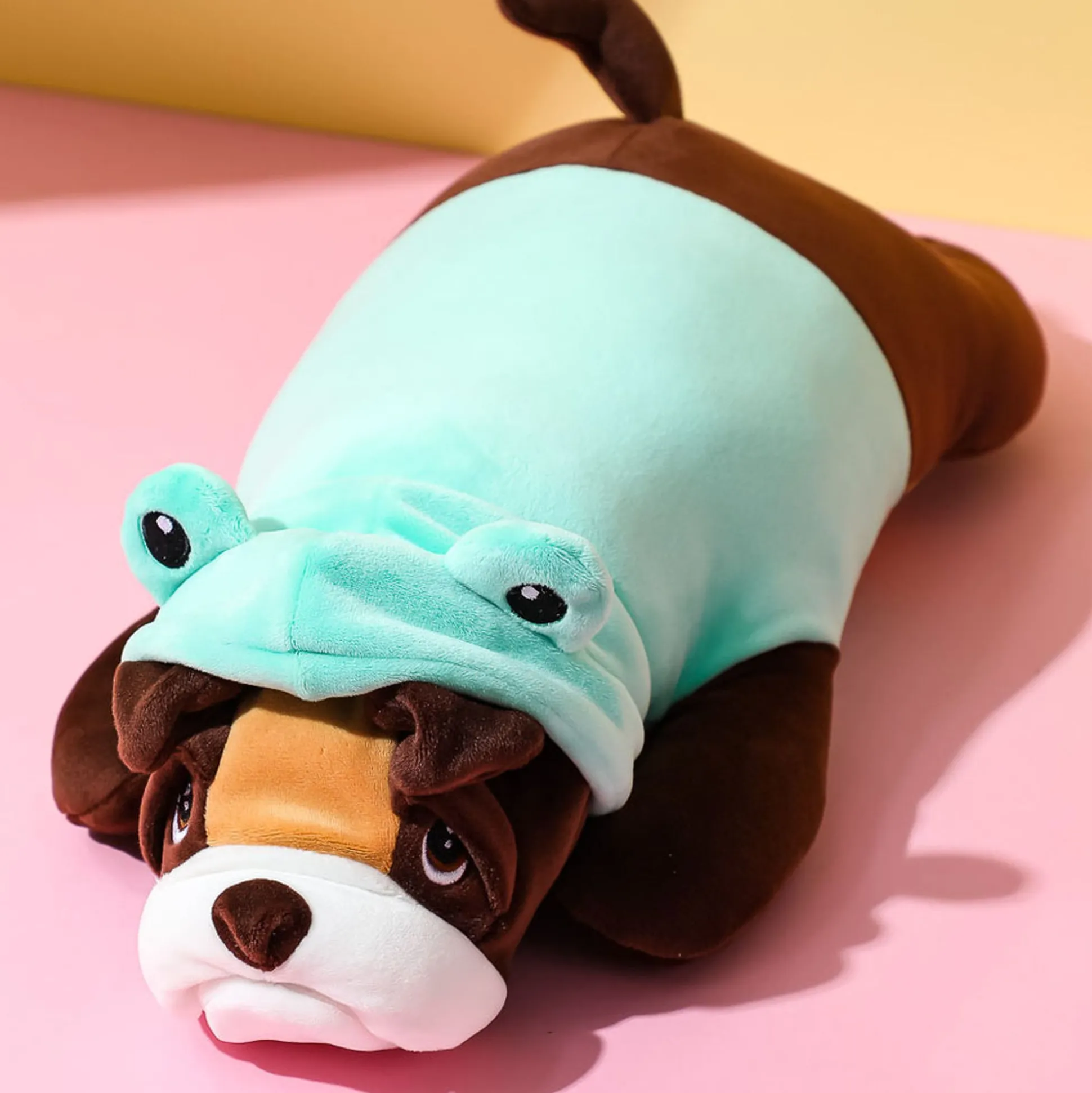 Cagnolino Shar Pei Di Colore Marrone Sdraiato Con Vestito Verde