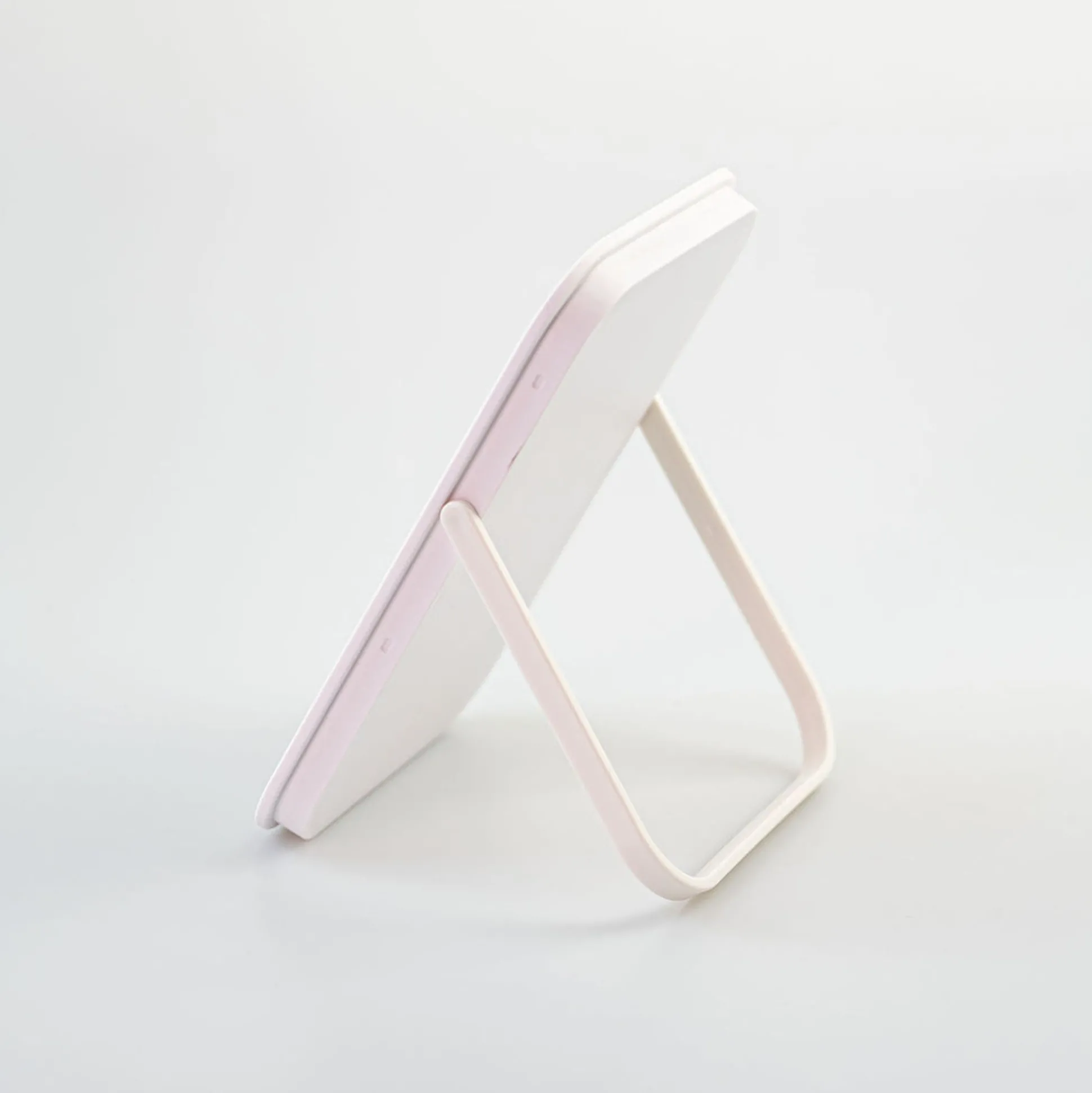 Specchio Da Tavolo Rettagolare, Con Taglio Minimal In Color Bianco Con Piedino Autoreggente Bianco.