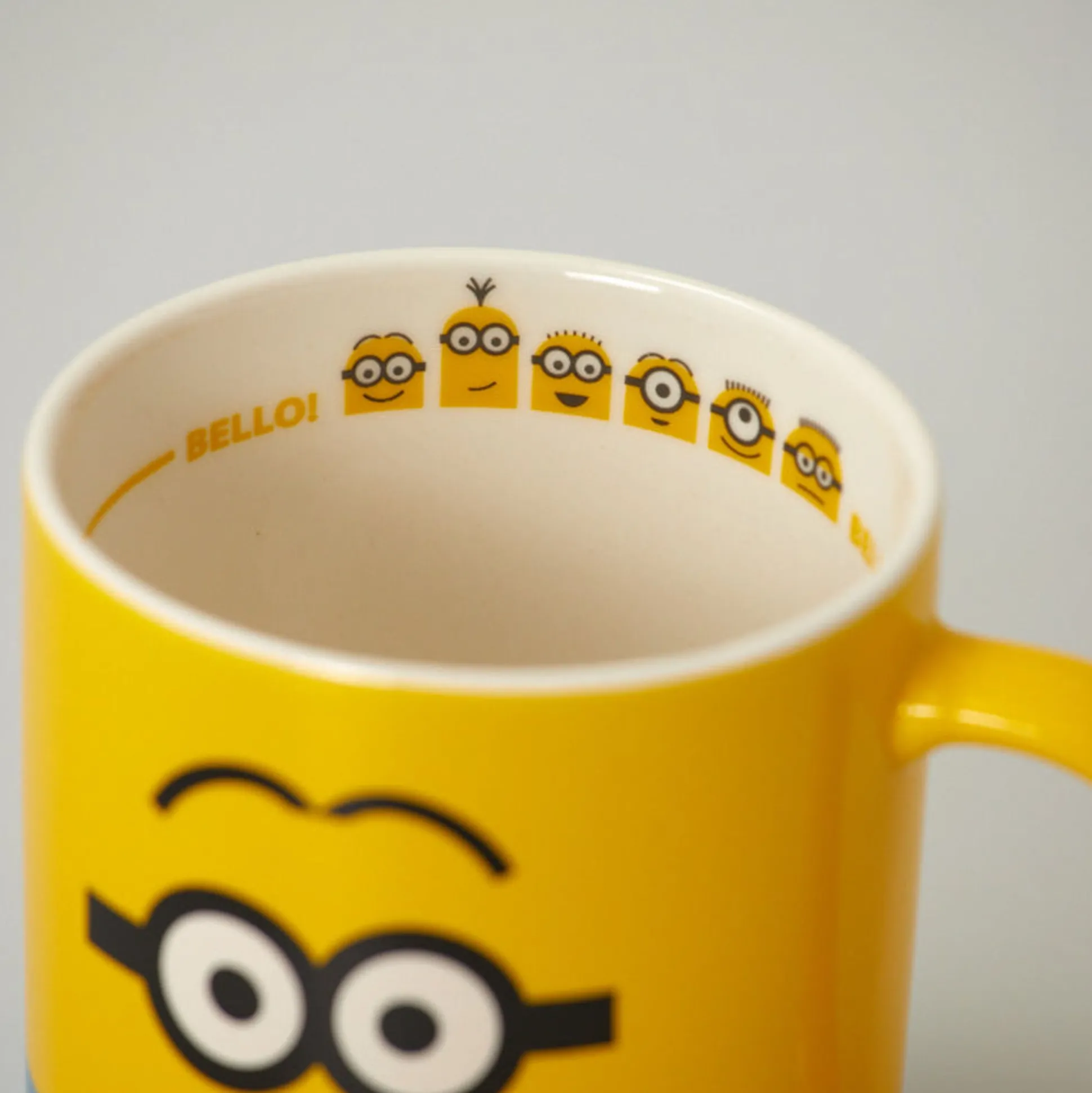 Tazza In Ceramica Gialla E Blu Della Collezione Minions Con Dettaglio Interno.